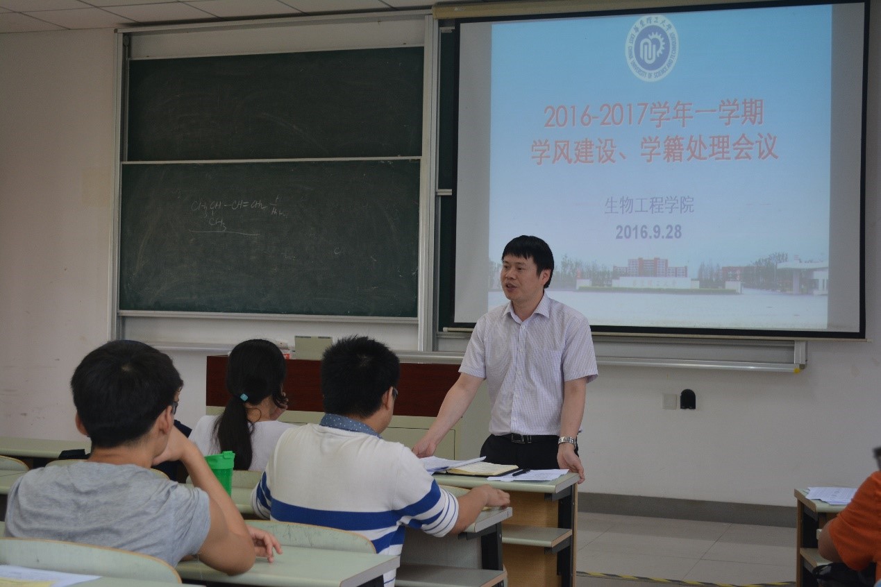 优良的教学传统和教师们对教学的热心,希望在今后的学风建设方面能齐心协力,改变教学理念,以学生学习成果为导向,争取取得更好成绩。他通报了上学期我院学籍处理的结果、各系各班级不及格率情况及在全校的水平,提出不及格率大于50%的班级需要采取适当的措施加强班级学风建设。他给学生提出不断加强自身管理能力、端正学习态度、增强学习效果等要求,并希望大家在之后的交流中取长补短,争取在学习上有所突破。