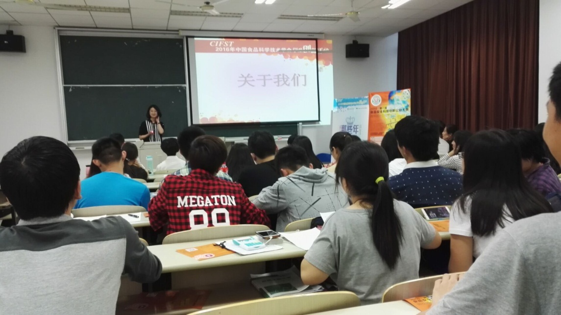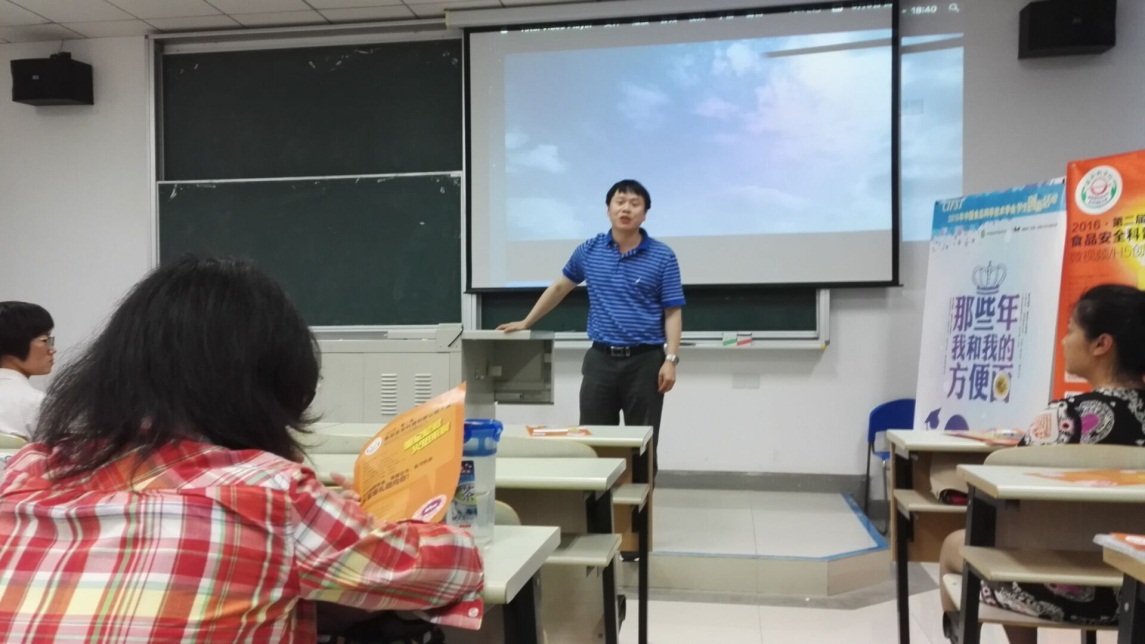 致辞。随后但晓雅女士详细介绍了中国食品科学技术学会的概况和“那些年,我和我的方便面”竞赛的内容、比赛规则与奖励。这个比赛鼓励同学在方便面的吃法上发挥自己的奇思妙想和创新能力,通过实践研究出新奇的吃法,这样的比赛大大激发了同学们的参赛热情。