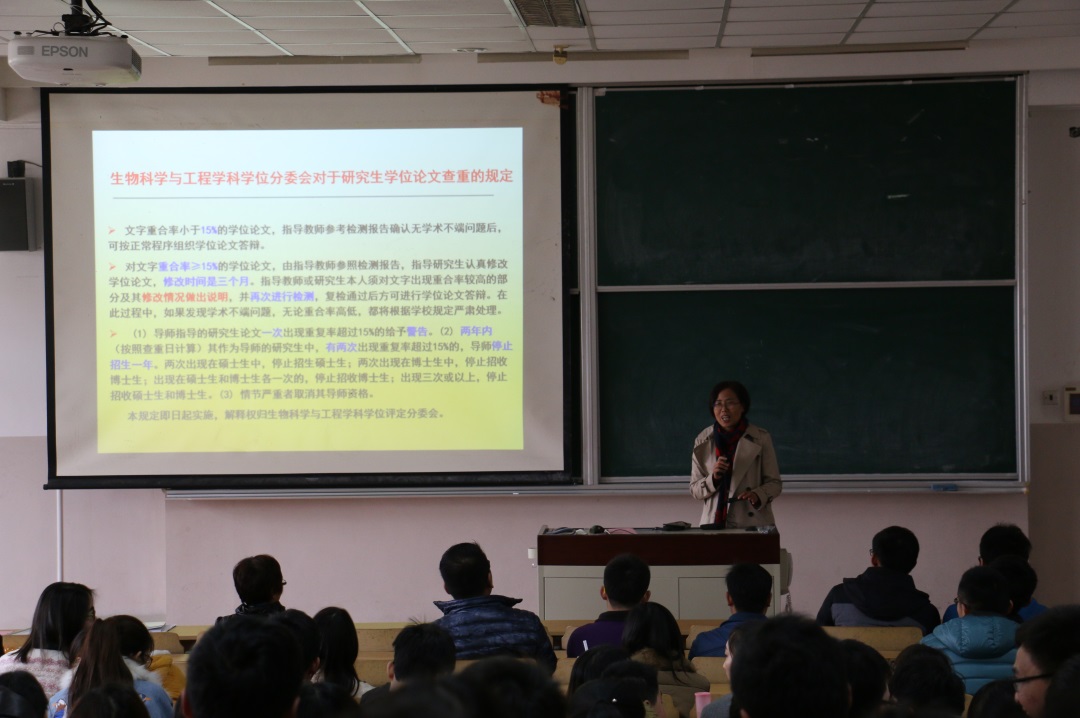 对于研究生学位论文查重、匿名评审、研究生申请学位发表学术论文的要求等方面进行了详细的宣讲,并列举了当今国内外学术不端的典型案例,阐述了遵守学术道德的重要性。指出学术不端不仅严重危害学生个人学术生涯,而且影响到啪啪网