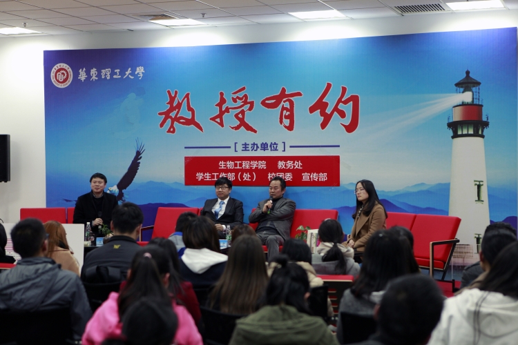 承办的“教授有约”活动在奉贤校区图文信息中心603室举办,邀请全国优秀科技工作者、国家重点学科——生物化工学科带头人、鲁华生物技术研究所所长魏东芝教授,国家教学名师培育团队成员王玮副教授,以及啪啪网