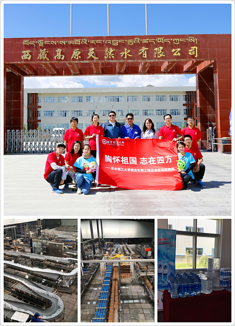 在位于拉萨市经开区西藏高原天然饮用水有限公司的生产车间内,生工师生在公司副总经理索朗次仁的带领下,近距离观察了现代化的生产流水线高效运转,一瓶瓶天然、绿色、无污染的“易捷·卓玛泉”天然饮用水通过灌装、封盖、包装等一体化生产,从这里被运送到全国各地。