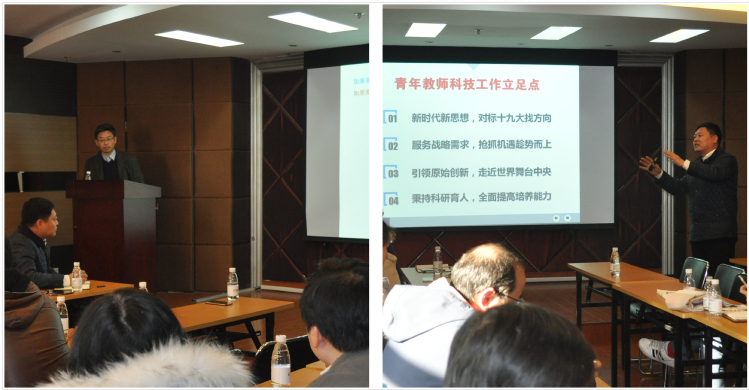 实际情况就新形势下科研工作如何对标党的十九大找方向、服务战略需求抢抓机遇趁势而上、进行原始创新引领国际科技前沿、秉持科研育人提高人才培养水平四个角度进行了剖析。同时,对青年教师如何准确定位、积极有效地获得科研项目、如何快速成长等问题和大家进行了深入交流,帮助青年教师树立科技工作立足点,积极推动青年教师与企业合作,鼓励大家释放科研热情,也就2018年啪啪网