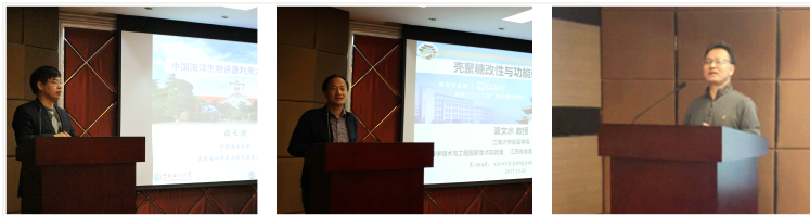 薛长湖教授为大家带来了题为“中国海洋生物资源利用之战略思考”的报告。从宏观角度,以海洋资源的研究思路和具体例子相结合的方法,为师生以后的课题方向给予启示。在他的报告中,涉及到了多个海洋资源研究热门话题,包括海参、壳寡糖酶,岩藻黄质、鱼油等研究方向,向在座学生普及了相关知识,又通过自己对于此类热门研究方向的观点来引导学生进一步思考。夏文水教授为大家带来了题为“壳聚糖改性与功能研究进展”的报告,详细介绍了壳聚糖用于淡水鱼鱼肉涂膜保鲜方面的研究进展以及相关复合膜的表征效果,并具体举例说明。报告内容还涉及具有高抗菌活性壳聚糖衍生物的开发,对壳聚糖在实际应用中的安全性以及抗菌效果做了深入的剖析。徐宝财教授主要和在座师生分享了他的实验室主要的课题方向,包括白酒酿造技术与传统技术的差异,白酒酿造中的风味物质研究,表面活性剂相关研究等。