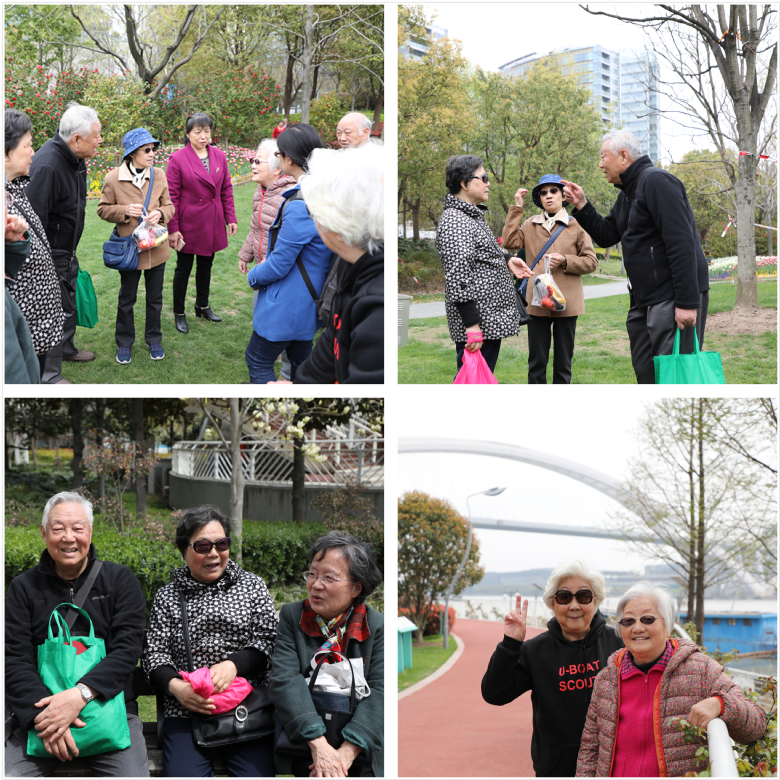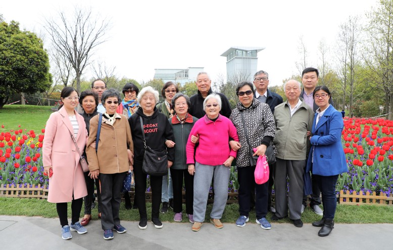 在徐汇区南园滨江绿地,大家欣赏春天的美景,交流各自的生活近况,感慨上海日新月益的变迁。正是由于一代代人的辛勤努力工作,才造就了我们今天的美好生活,也为生物工程专业获得工程教育认证,顺利通过本科教学审核评估等工作奠定了良好的基础。