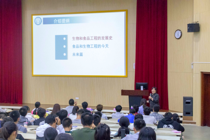 院长庄英萍教授应邀做客第99期生工讲坛。面向2018级本科生讲授“新生第一课”——生物工程、食品工程的昨天、今天和明天。