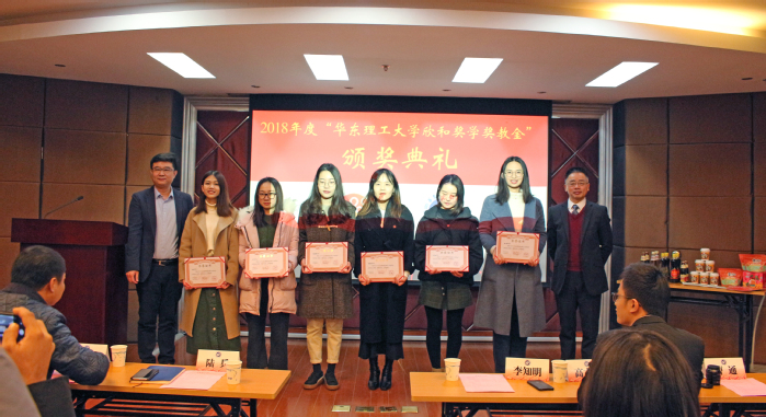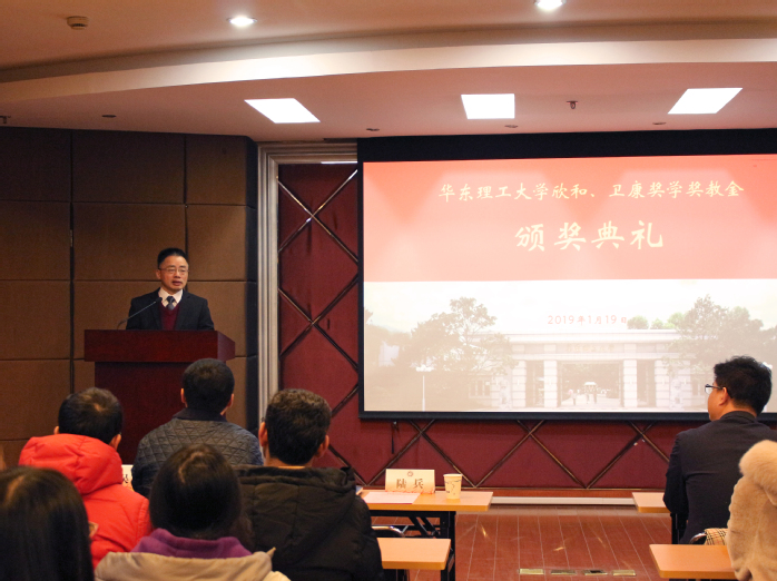 2019年1月19日,我院欣和奖学奖教金、卫康奖学奖教金颁奖典礼在实验十八楼315隆重举行。山东欣和食品工业有限公司销售总监李知明先生、华东区域经理高古风先生、销售经理曹通先生、李蓉女士和李萱女士出席颁奖典礼,啪啪网