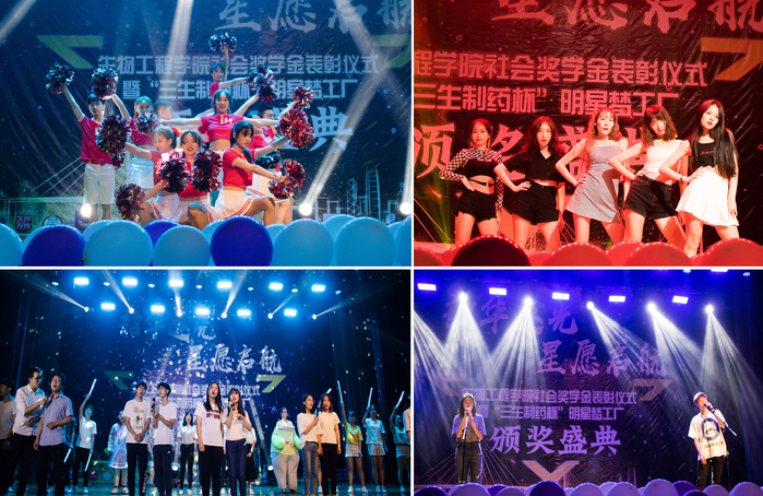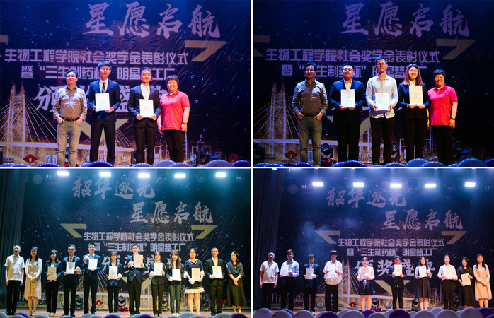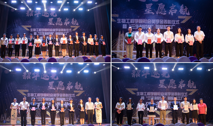 2018-2019学年社会奖学金表彰仪式暨“三生制药杯”明星梦工厂颁奖典礼于奉贤校区大学生活动中心剧场举办。典礼向安琪酵母英才奖、巴玖奖学金、格燊奖学金、金鑫奖学奖教金、凯茂生物奖学金、梅特勒-托利多过程分析奖学金、新华扬奖学金、欣和奖学奖教金、卫康奖学金共9个社会奖学金的115位获奖者颁发了证书,宣布了“蔚蓝生物杯”大学生学术科技创新竞赛的7个获奖项目,并表彰了生工之星获奖者与提名者、“勤学奋进”明星班集体获奖班级与提名班级。