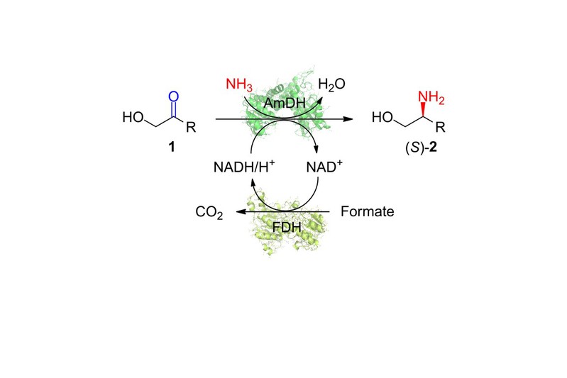 通过对野生型亮氨酸脱氢酶的分子改造,他们首次开发出对α-羟基酮底物具有胺化还原活力的胺脱氢酶,实现了一系列α-羟基酮底物的还原胺化,合成了光学纯的(S)-邻位氨基醇产物,对映体过量值ee均大于99%。利用所开发的胺脱氢酶,最终实现了(S)-2-氨基-1-己醇和抗结核病药物乙胺丁醇(Ethambutol)手性前体(S)-2-氨基-丁醇的酶法制备,证明了胺脱氢酶催化合成手性氨基醇的可行性。近年来,该团队在胺脱氢酶催化合成手性胺的研究中已经取得了一系列研究成果,如通过分子改造显著拓展了胺脱氢酶催化的底物范围(ACS Catal. 2018, 8, 2622−2628);利用自主开发的胺脱氢酶设计了高效合成手性胺的多酶级联反应新途径(J. Org. Chem. 2019, 84, 14987; ChemCatChem2015, 7, 3838)。