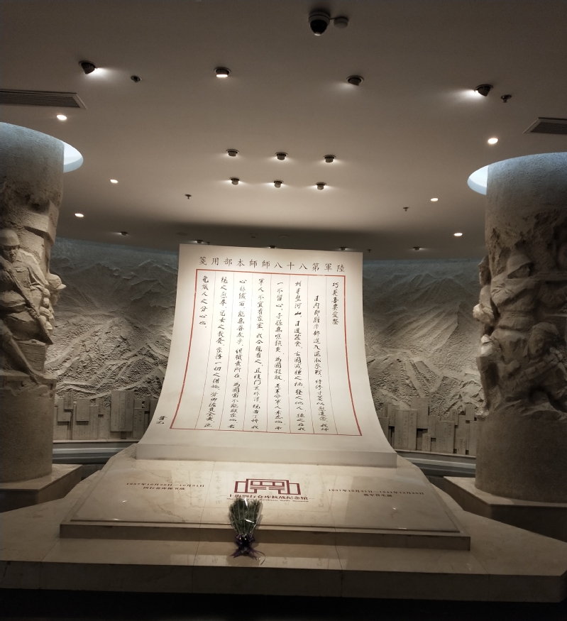 上海四行仓库抗战纪念馆展馆是以一封谢晋元在赴淞沪战场前写给妻子的家书开篇,展现了以谢晋元为代表的“八百壮士”在国难当前之际,舍家为国的家国情怀,展现出对抗战必胜的坚定决心。