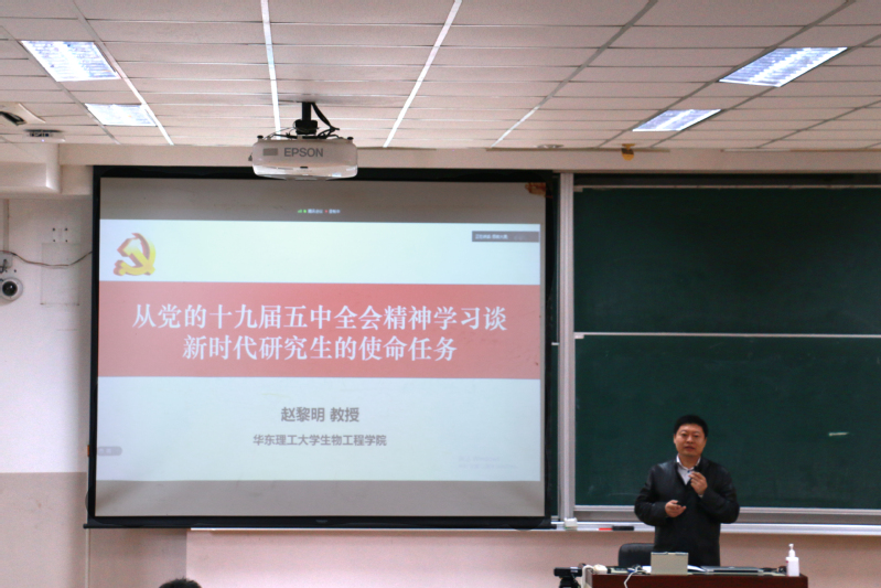 赵黎明教授从十九届五中全会精神、大学精神和大学思维以及新时代生工研究生的使命任务三个方面展开本次的思政课。他向同学介绍了十九届五中全会的主要精神内容、时代背景、历史及现实意义,特别就科技创新和人才强国战略结合啪啪网
