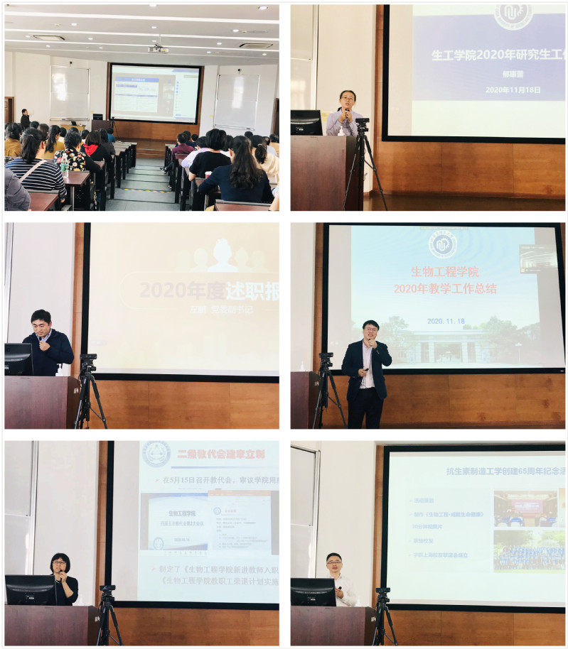 科研和国重室工作、研究和学科工作、学生工作、本科教学工作、工会工作、校友和安全及教师思政工作做了总结汇报。党委副书记、院长庄英萍作了啪啪网