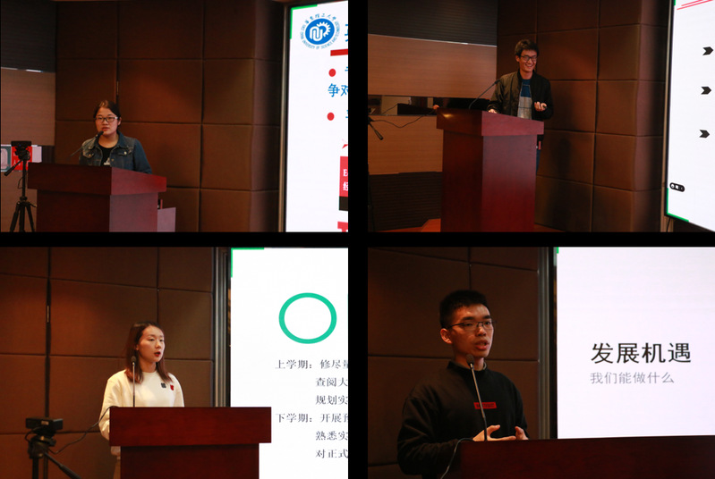 任文霞从听说读写四个方面向大家分享学习英语的有效方法;玄起泽分享自己在选择课题方向、紧跟课题前沿方面所积累的经验,赵迪向大家分享了自己研究生生涯规划与时间管理;庄家丰为大家介绍了生物医药行业的趋势并提醒师弟师妹对研究生阶段的学习做好提前规划。