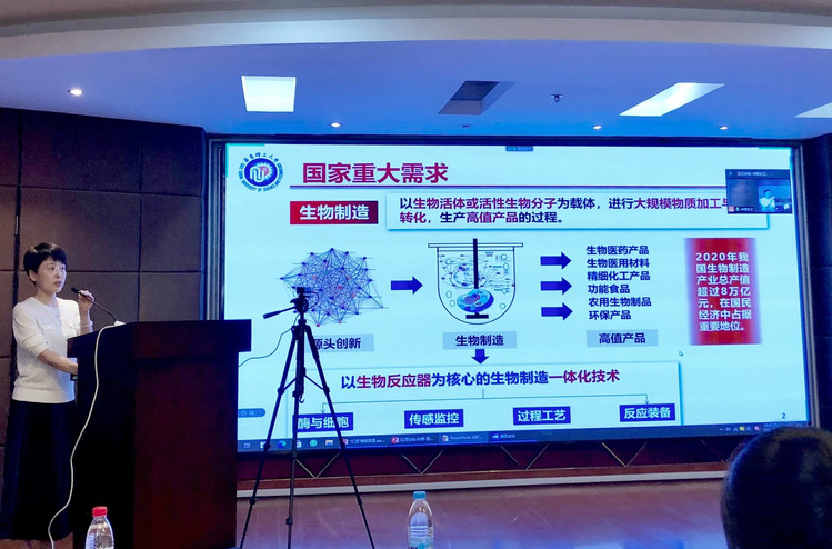 非常重视发展智能生物制造、创新人才引进和培养。生物反应器工程国家重点实验室主任张立新、副主任刘琴、主任助理郑高伟分别作了题为“国之重器,您的机遇”、“华理生物制造——邀你共同打造国家战略科技力量”、“高性能酶催化剂的创制与应用研究”的报告,详细介绍了国重室的整体情况、优势方向和代表性研究成果。