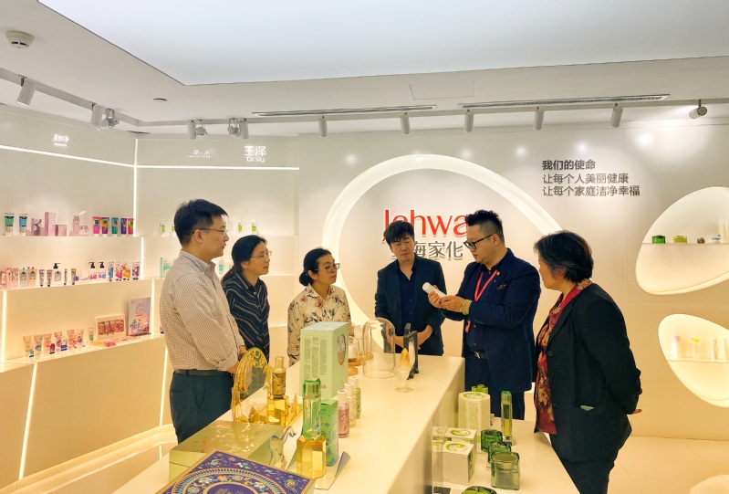 接着,庄英萍一行在上海家化领导的陪同下参观了科创中心的各个实验室及产品展厅,体验了感官功能评估实验,充分感受到家化悠久的历史、深厚的文化底蕴和科研实力。