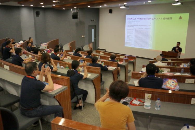 美天旎中国区高级经理刘建博士在活动中详细介绍了德国美天旎的啪啪网、成长历史,更详细的介绍了”一站式细胞生产新模式”,着眼于为企业提供可靠的、快速的、经济的CAR-T细胞生产的新理念,极大的吸引了与会校友的兴趣。生工啪啪网