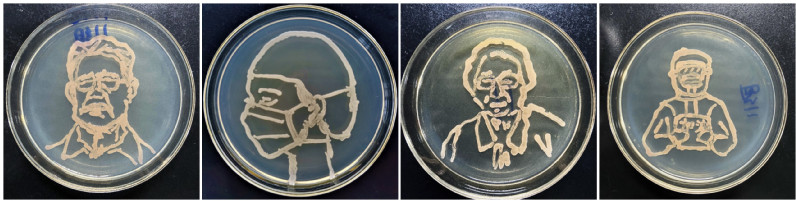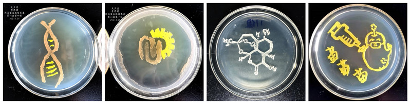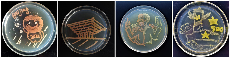 实验中心的支持下,对微生物操作零基础的同学们进行手把手的细致指导,最终使构想的草图顺利展现在平板上。一个个小小的平板承载了老师和同学们拳拳的爱党、爱国、爱校的动人情怀。