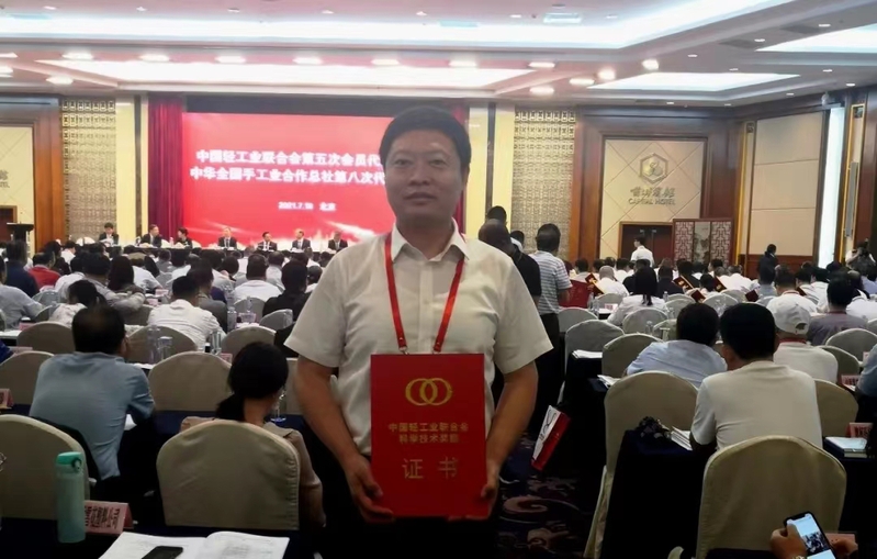 图片说明:赵黎明获“十三五”轻工行业科技创新先进个人