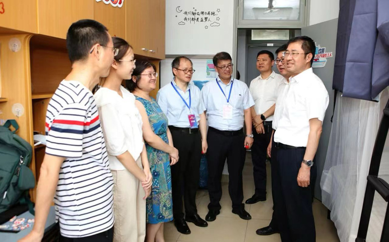 领导深入学生宿舍,与新生和家长亲切交谈。