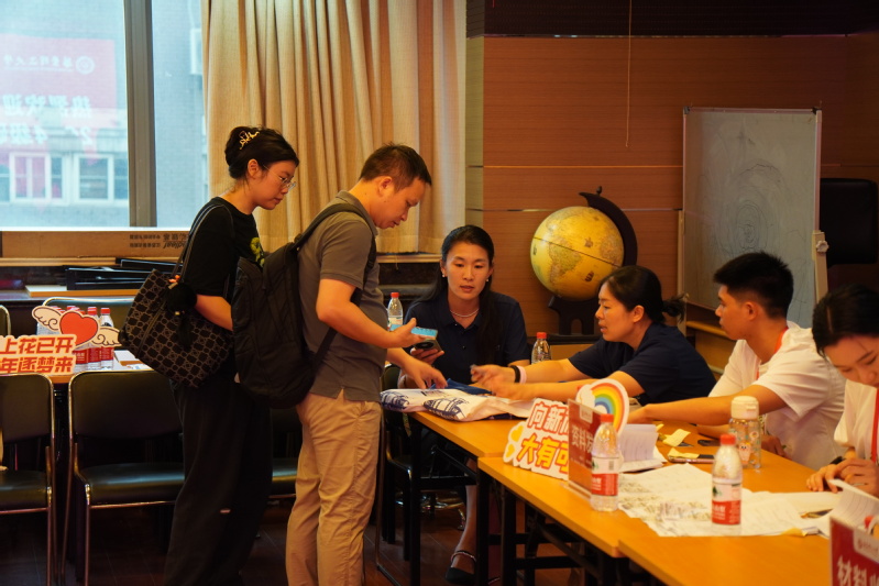 报到点位,志愿者同学各司其职,新生们有序地完成了报到流程,核对新生证件,提交报到材料,领取校园卡、宿舍钥匙、体检单并现场签字确认。炎热天气下志愿者们始终热情周到,彰显生工学子良好风貌。