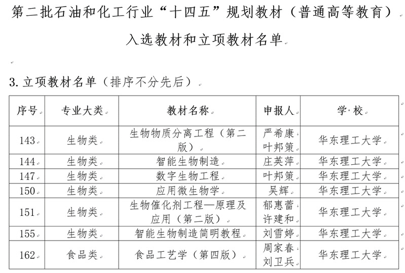 7项教材榜上有名。其中,生物类6项,食品类1项。