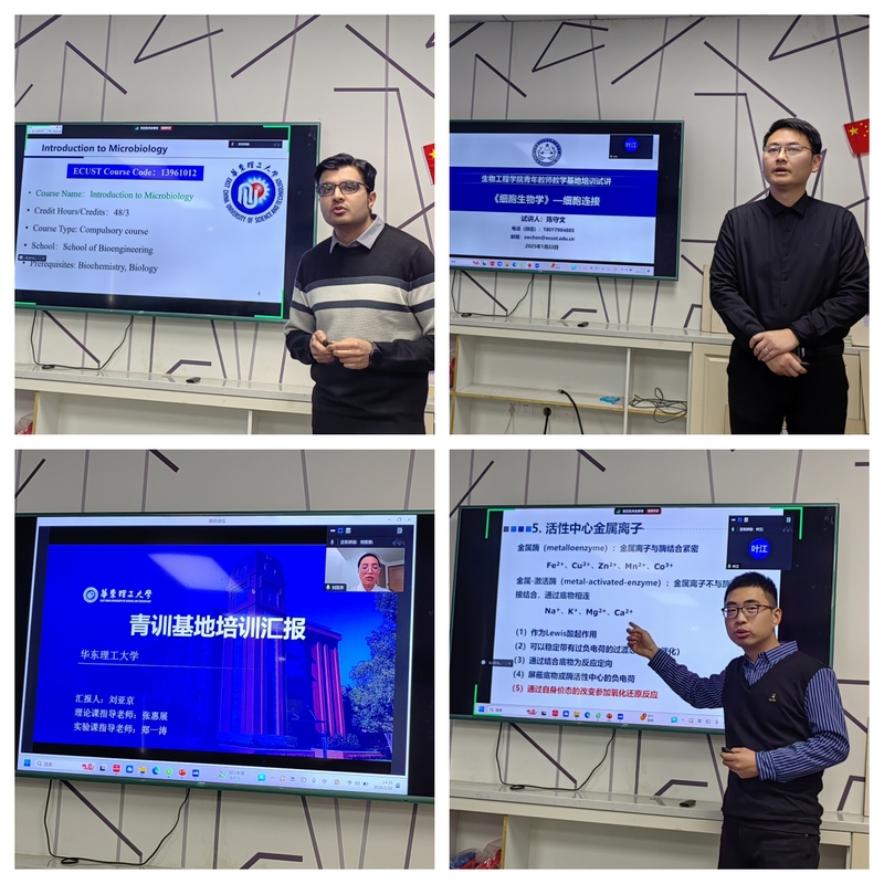 教师教学能力培训分基地(以下简称“生工分基地”)在实验十八楼301举行青年教师出站考核。张江树教学名师张惠展教授和蔡海波教授、第六届上海高校青教赛二等奖获得者周勉教授担任考核评委,基地4位青年教师参加了本次考核,在站青年教师到场观摩学习。