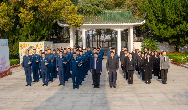 烈士陵园广场庄严肃穆,全体人员整齐列队,高唱国歌,嘹亮歌声激荡爱国情怀。两名党员代表缓步上前,向烈士纪念碑敬献“英雄烈士永垂不朽”花圈挽联,全体成员肃立默哀三分钟,向长眠于此的革命先烈致以深切哀思与崇高敬意。
