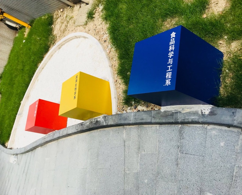 写有生工啪啪网 三个系的模块座椅,校友们可以对号入座,合影留念
